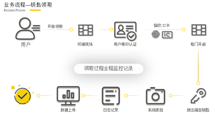 系統(tǒng)包括智能鑰匙柜、終端控制系統(tǒng)、管理平臺(tái)、中間件以及輔助設(shè)備。主要功能包括鑰匙領(lǐng)取、鑰匙歸還、鑰匙柜設(shè)備管理、視頻監(jiān)控、安防報(bào)警、視頻對(duì)講、遠(yuǎn)程監(jiān)控、遠(yuǎn)程操作、遠(yuǎn)程設(shè)置、遠(yuǎn)程升級(jí)、用戶管理、日志、報(bào)表、統(tǒng)計(jì)查詢等功能。