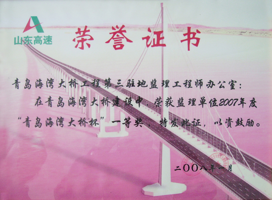 2008年青島海灣大橋杯一等獎(jiǎng)